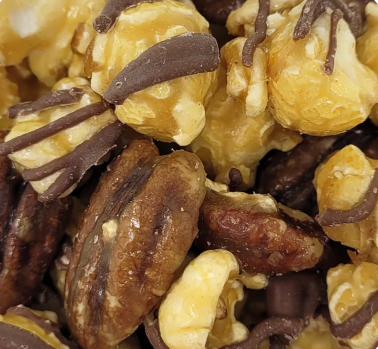 Whole Grain Non-GMO Popcorn, Corn Oil (for caramel batches), Light Brown Sugar, Natural Cane Sugar, Corn Syrup Solids, Mixed Nuts (Almonds, Cashews, Pecans, Peanuts, Walnuts, Macadamia Nuts), Butter (Cream, Salt), Milk Chocolate (Sugar, Cocoa Butter, Milk Solids, Soy Lecithin, Vanilla), Less Than 2% of: Madagascar Bourbon Vanilla Extract, Canola Oil, Popcorn Salt.
