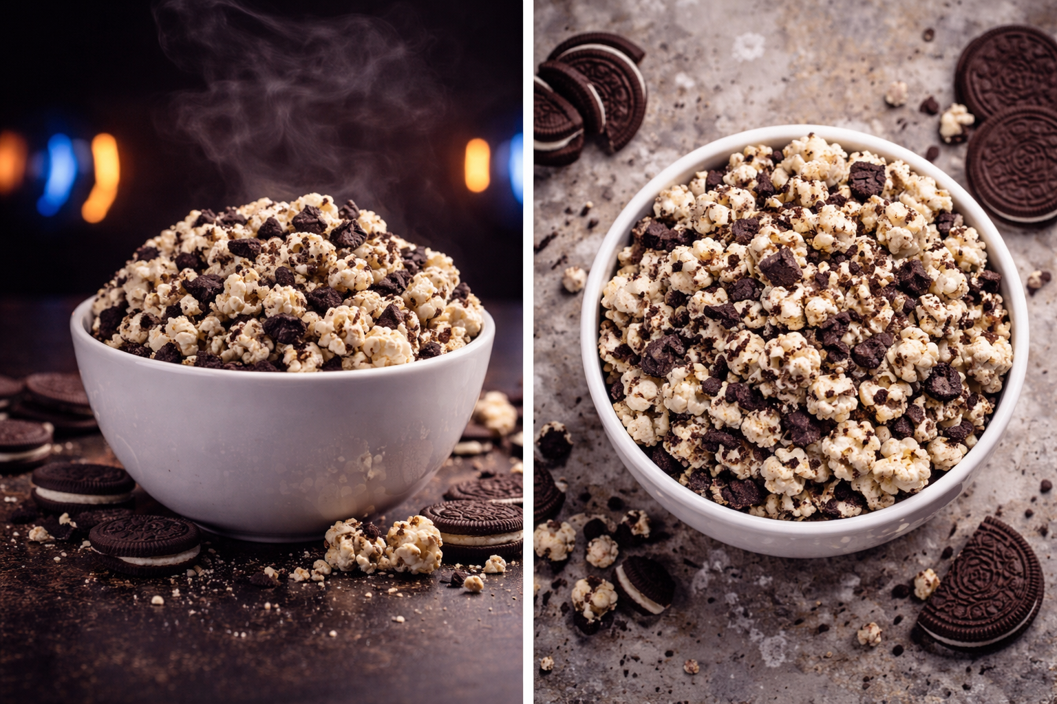 A timeless dessert favorite reimagined in popcorn form. Cookies & Cream popcorn begins with smooth French Vanilla popcorn, then is luxuriously rolled in creamy white chocolate and finished with generous pieces of crushed chocolate sandwich cookies. The result is a sweet, crunchy treat that delivers the classic cookies-and-cream flavor in every bite.